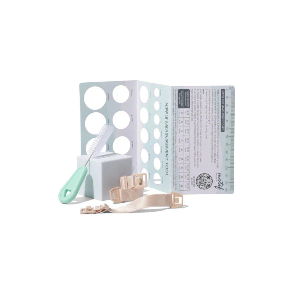 The Motif Aura Glow with Wet-Dry Bag bundle comes with everything you need, including our NEW Wet-Dry Bag, a nipple ruler, bra strap adjusters, cleaning brush, 24 mm breast shields with 15 mm, 17 mm, 19 mm and 21 mm inserts for the perfect fit.
